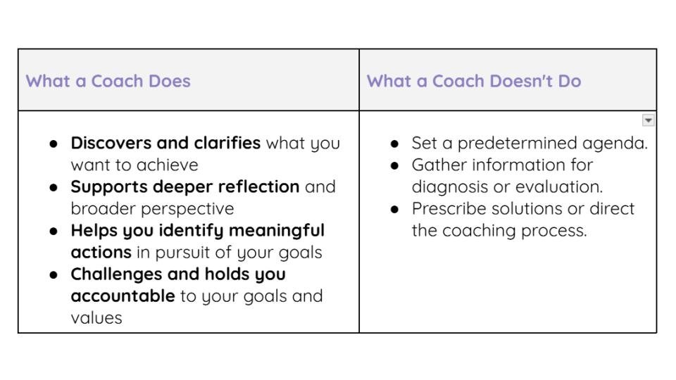 You remain in the driver's seat. Your coach is your thinking partner, helping you tap into your own wisdom and agency.